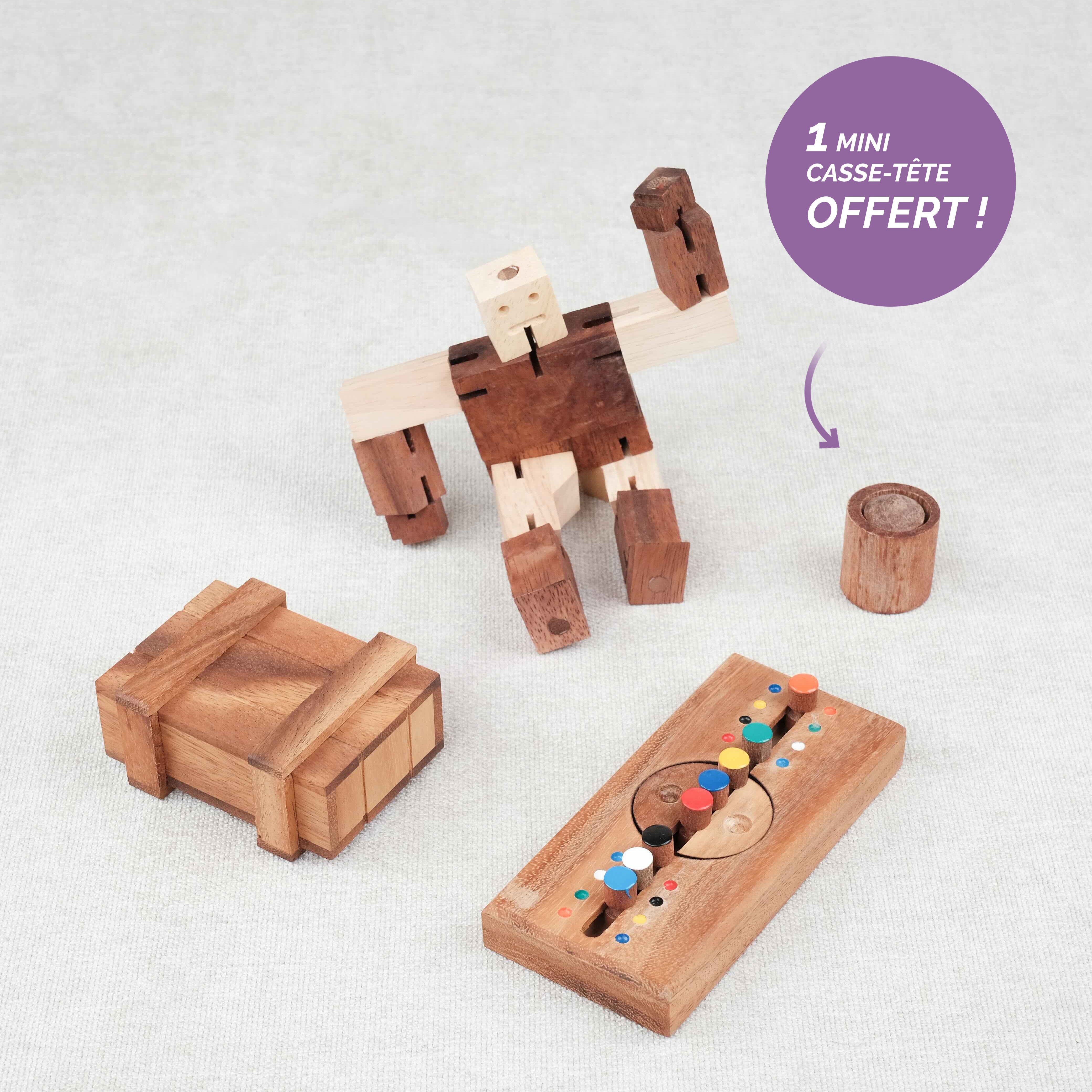 Des associations de jeux traditionnels en bois soigneusement sélectionnées selon votre style de jeu : Pack "jeux familiaux", "stratégiques", "casse-têtes suprêmes", ou encore "jeux d’adresse". Chaque pack est conçu pour offrir une expérience cohérente, amusante et stimulante, avec en bonus un MINI CASSE TÊTE OFFERT dans chaque lot !
