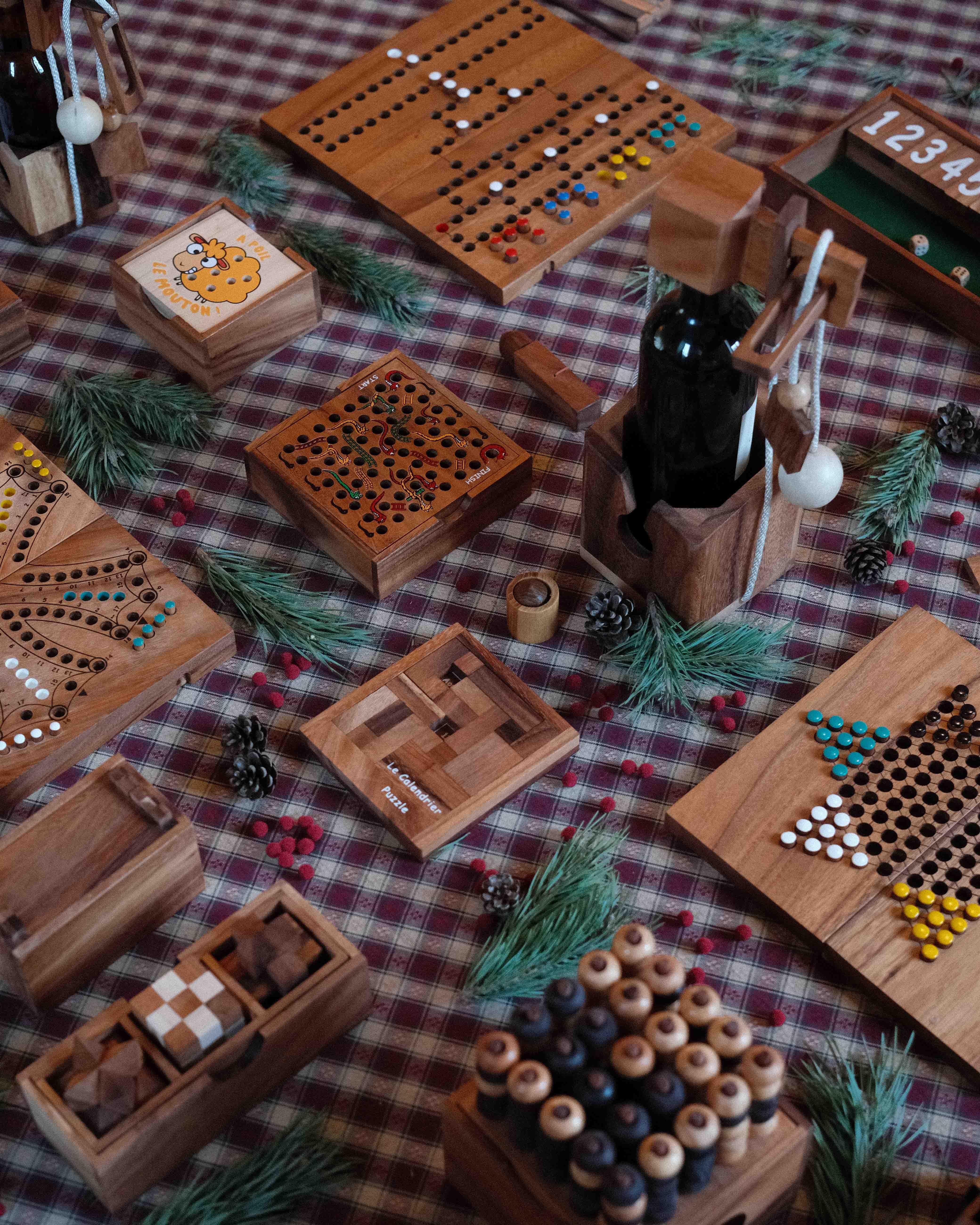 Des associations de jeux en bois soigneusement sélectionnées selon votre style de jeu : Pack "jeux familiaux", "stratégiques", "casse-têtes suprêmes", ou encore "jeux d’adresse". Chaque pack est conçu pour offrir une expérience cohérente, amusante et stimulante, avec en bonus un MINI CASSE TÊTE OFFERT dans chaque lot !