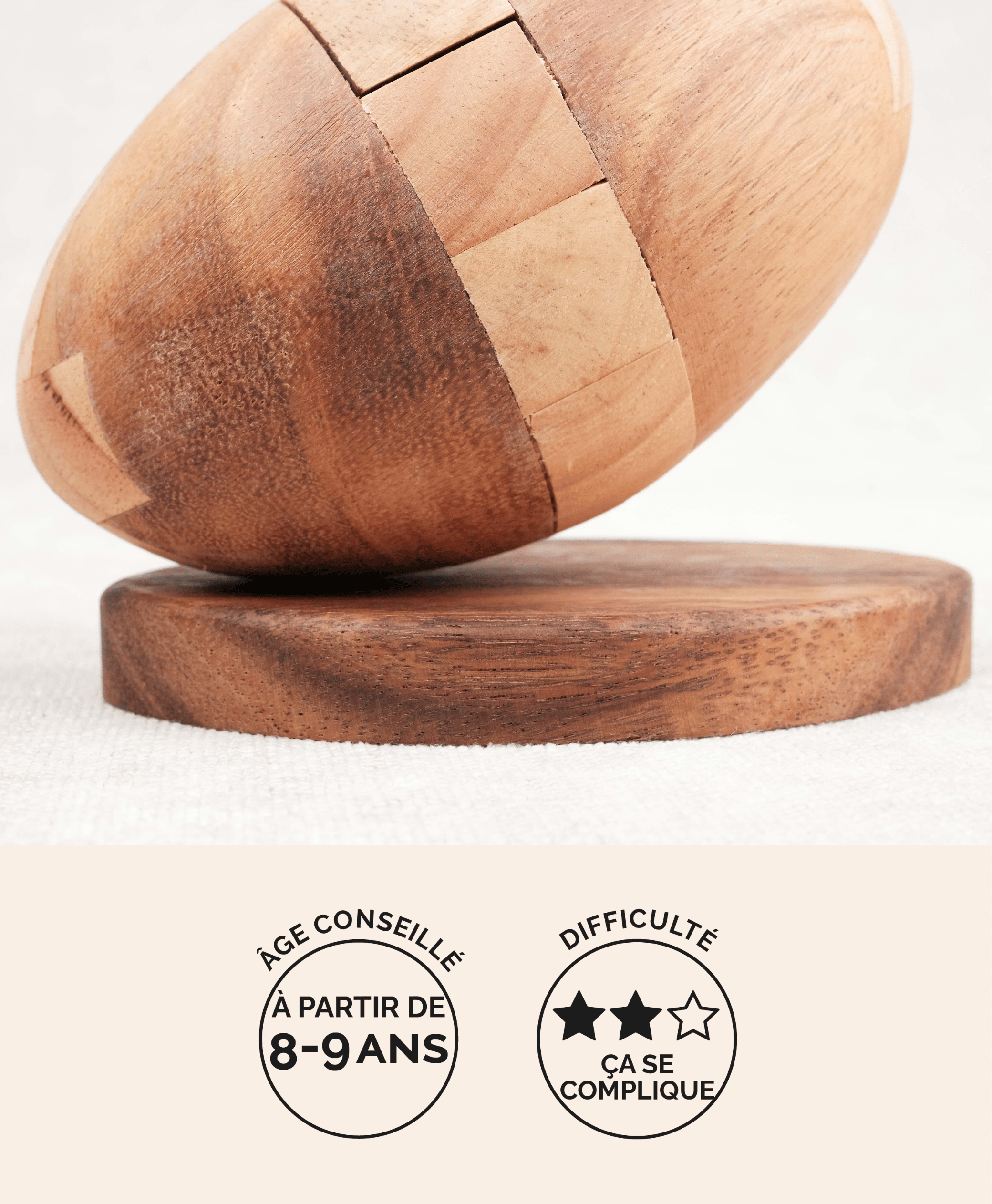 Le Ballon de Rugby en bois est à démonter puis à reconstituer pièce par pièce, un vrai défi cérébral pour les amateurs de ballon ovale et de logique.