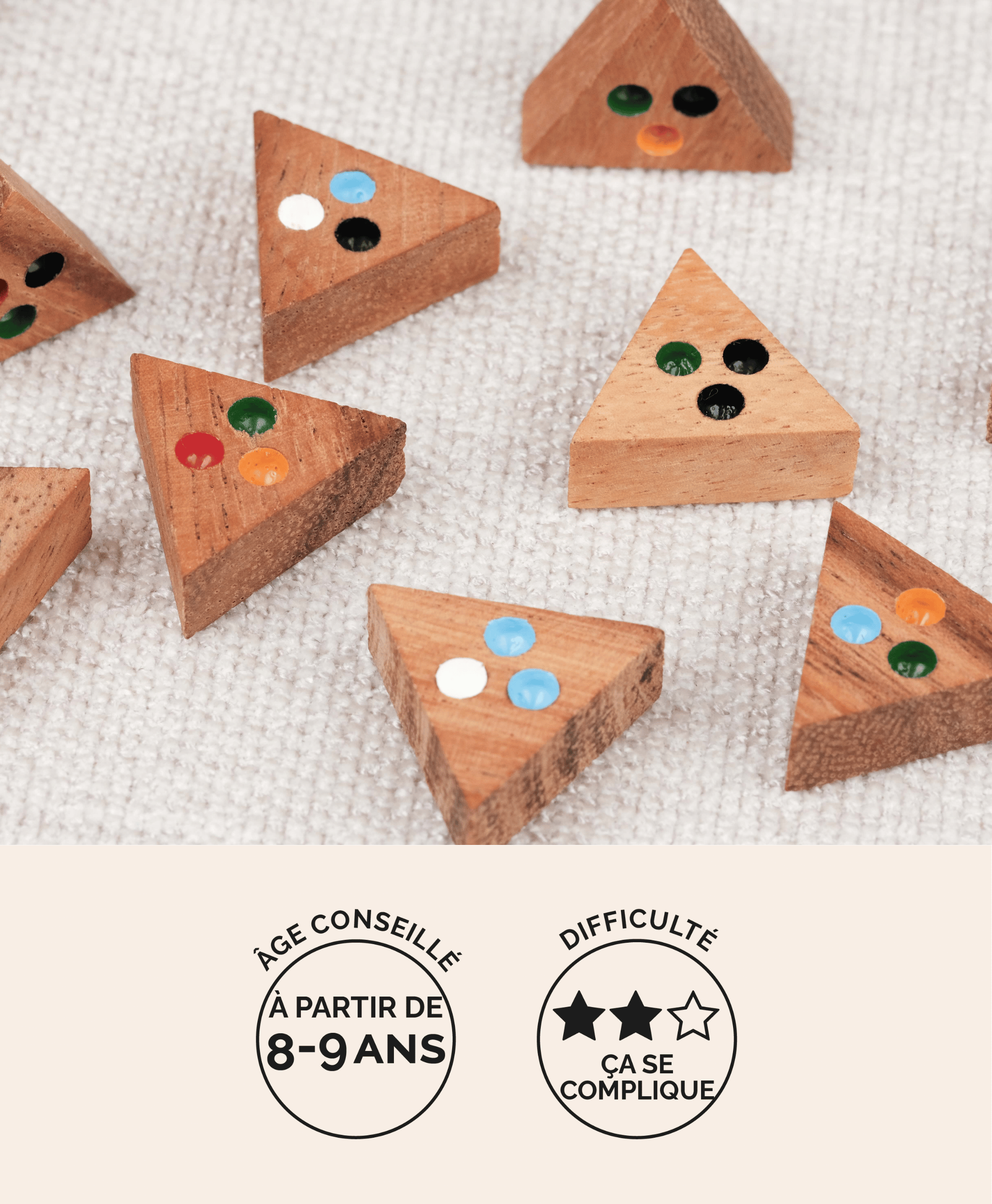 Détails du des pièces du Puzzle triangulaire en bois – Jeux Faugère