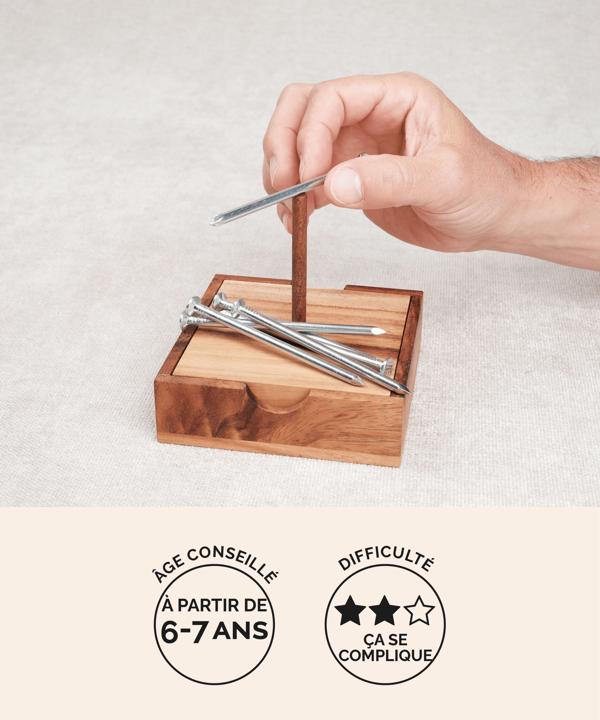 Casse-tête en bois La Tour de Hanoï monté sur son coffret – Jeux Faugère