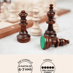 Le plateau est accompagné d’une boîte en bois dédiée pour ranger et protéger chaque pièce. Un ensemble durable, stable et parfaitement conçu pour traverser les années et les générations.