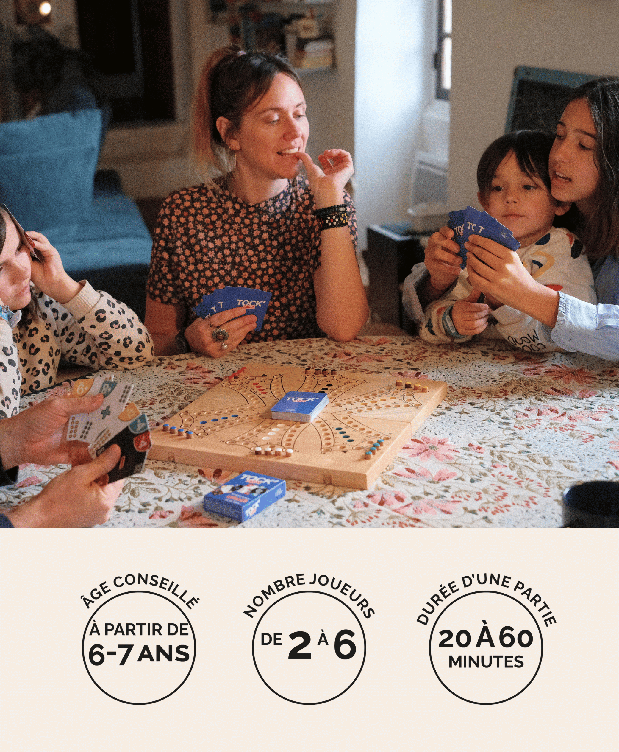 Cette édition XL du jeu de Tock en bois inclut notre jeu exclusif Tock’CARDS®, pensé pour améliorer la lisibilité et la dynamique des parties.