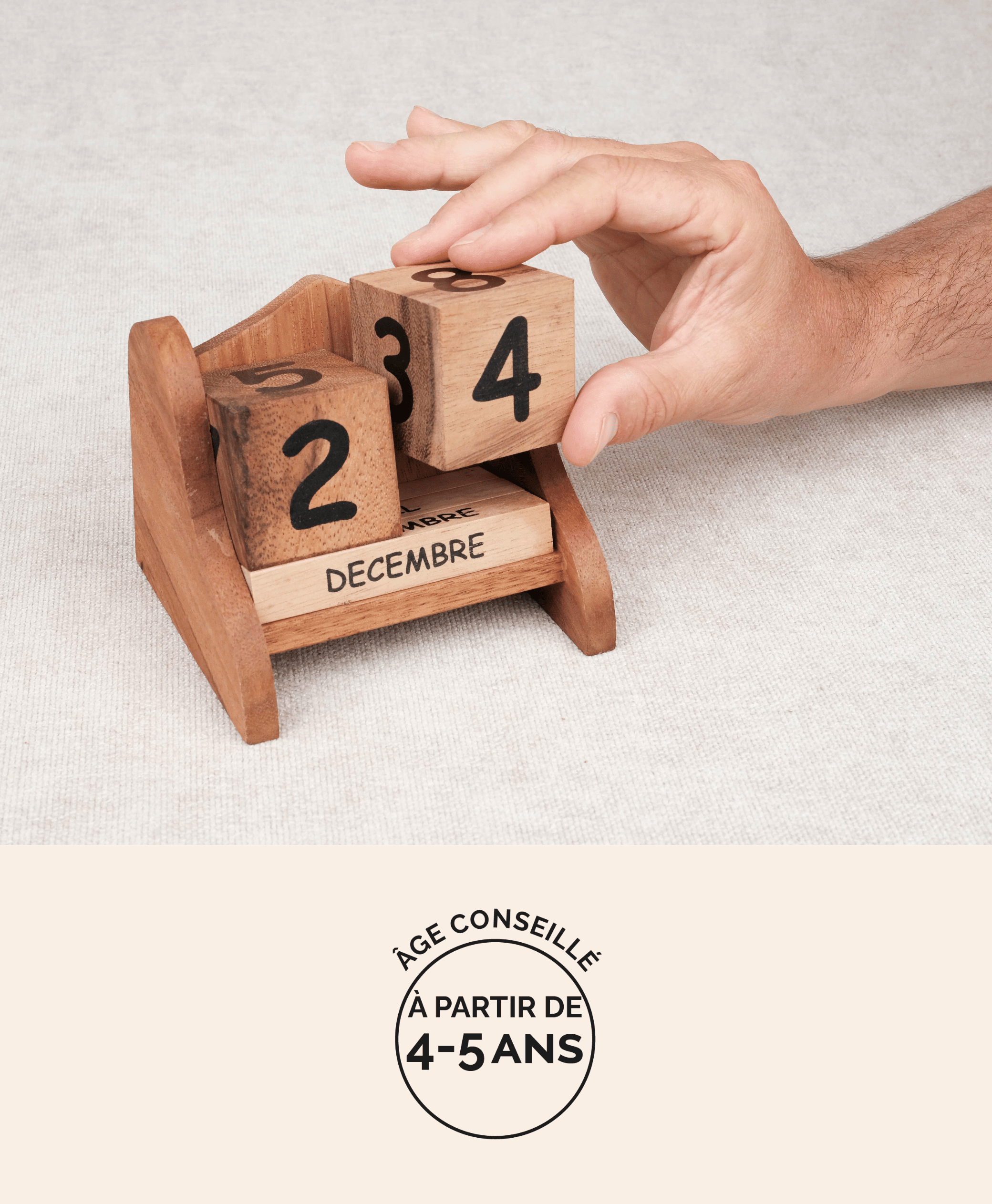 • Un jeu quotidien : chaque matin, l’enfant manipule les blocs en bois pour afficher la nouvelle date.