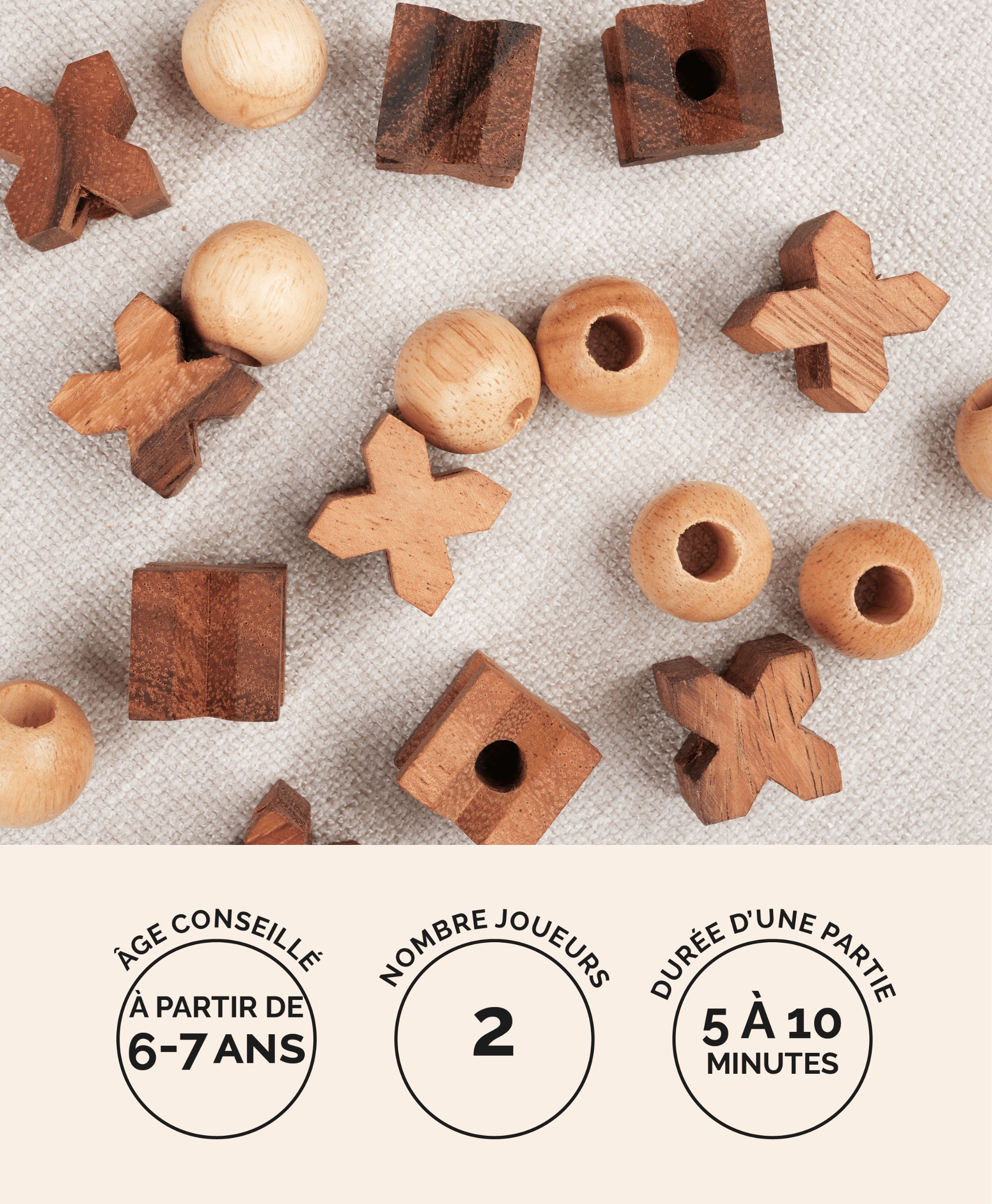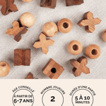 Fabriqué en acacia et hévéa, ce jeu allie solidité et esthétisme. Ses pièces sculptées en forme de boules et de croix offrent une belle prise en main et un rendu chaleureux, parfait pour décorer une table basse autant que pour jouer en famille.