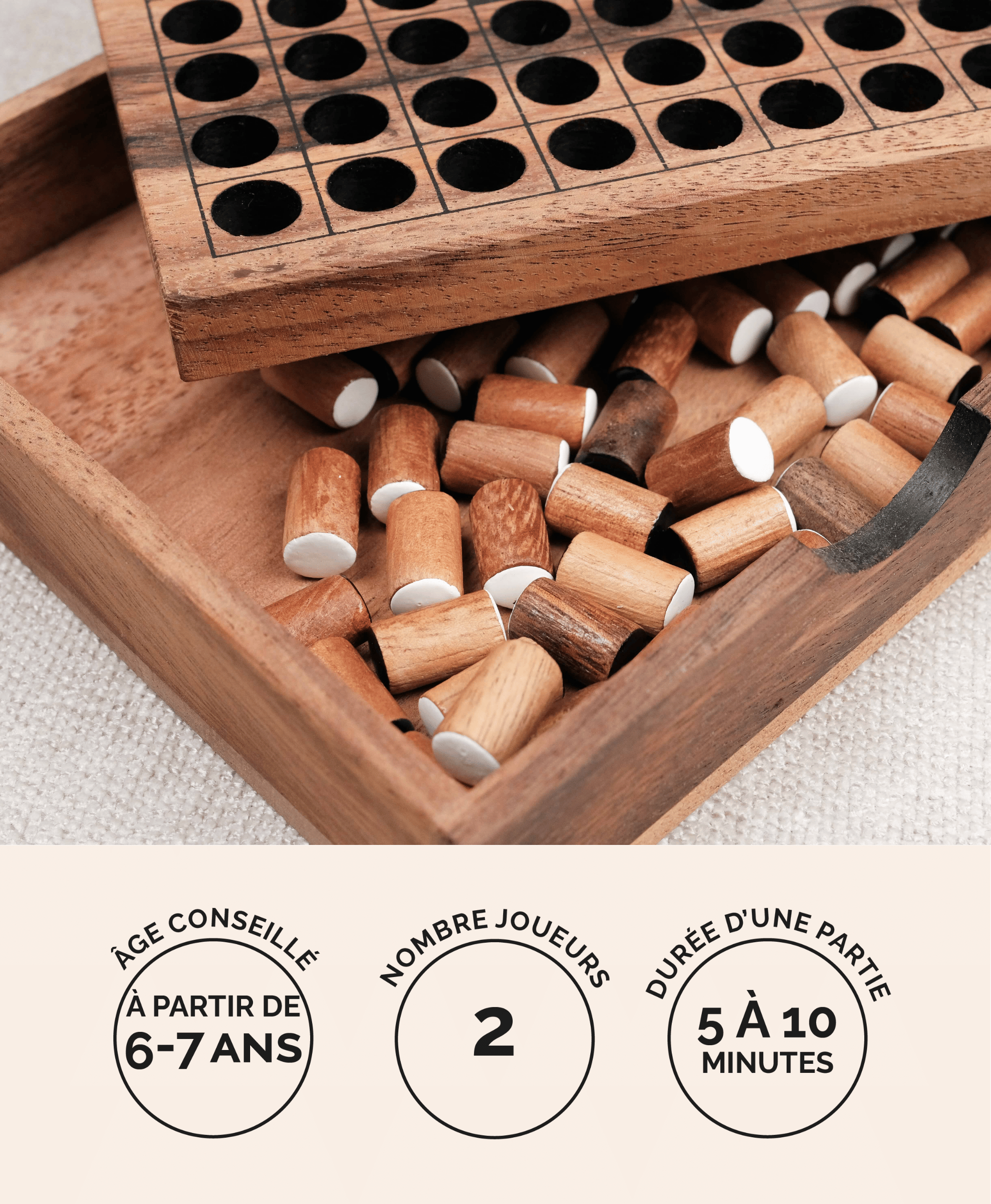Avec ses pièces en bois massif, ce jeu est à la fois élégant, durable et parfaitement adapté aux parties rapides entre amis ou en famille.