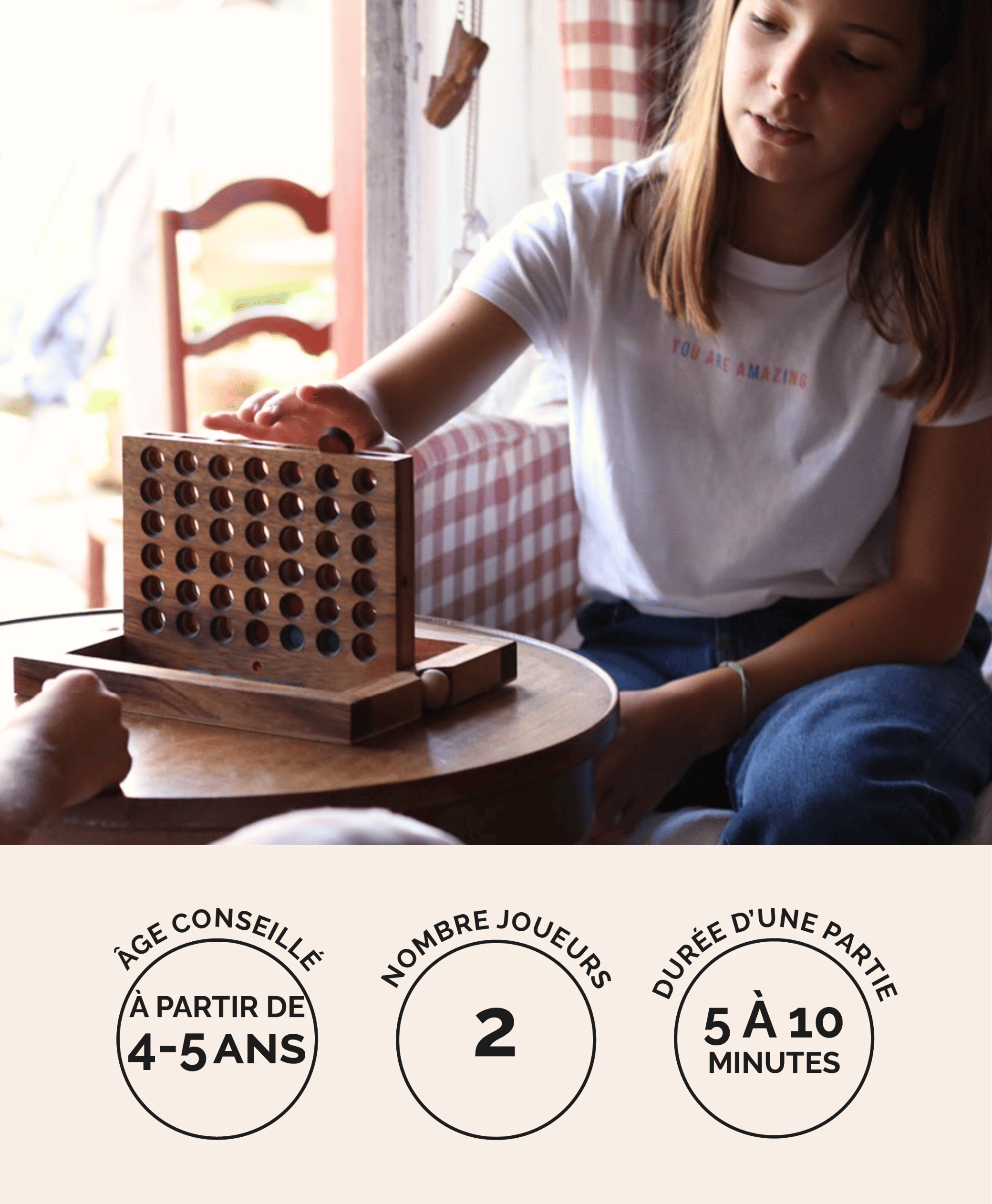 👉 Principe du jeu : chaque joueur insère un jeton à tour de rôle dans la grille. Le but ? Aligner 4 jetons de sa couleur en horizontal, vertical ou diagonal avant son adversaire.