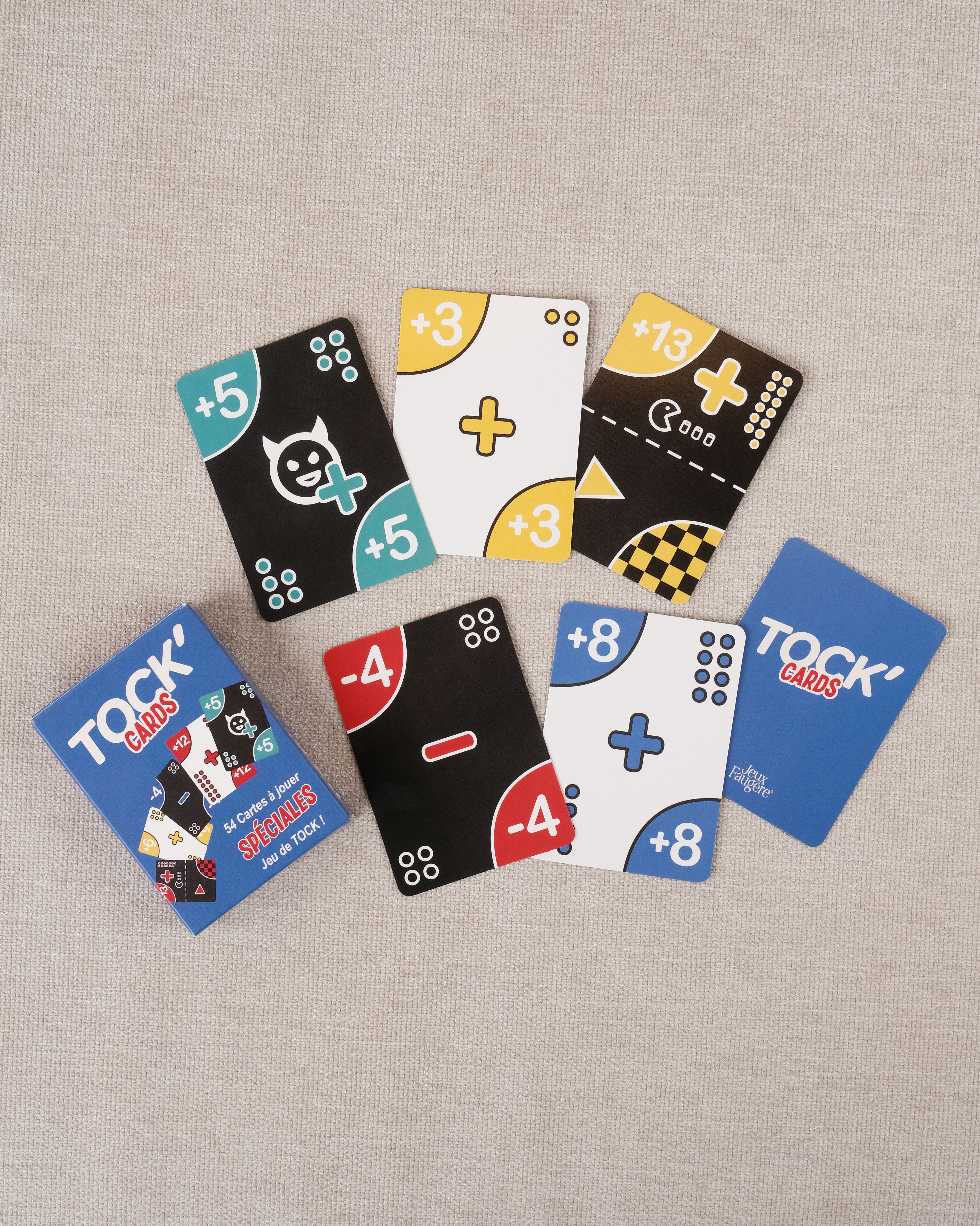 Le paquet inclut 54 cartes officielles intégrant toutes les actions emblématiques du Tock :
