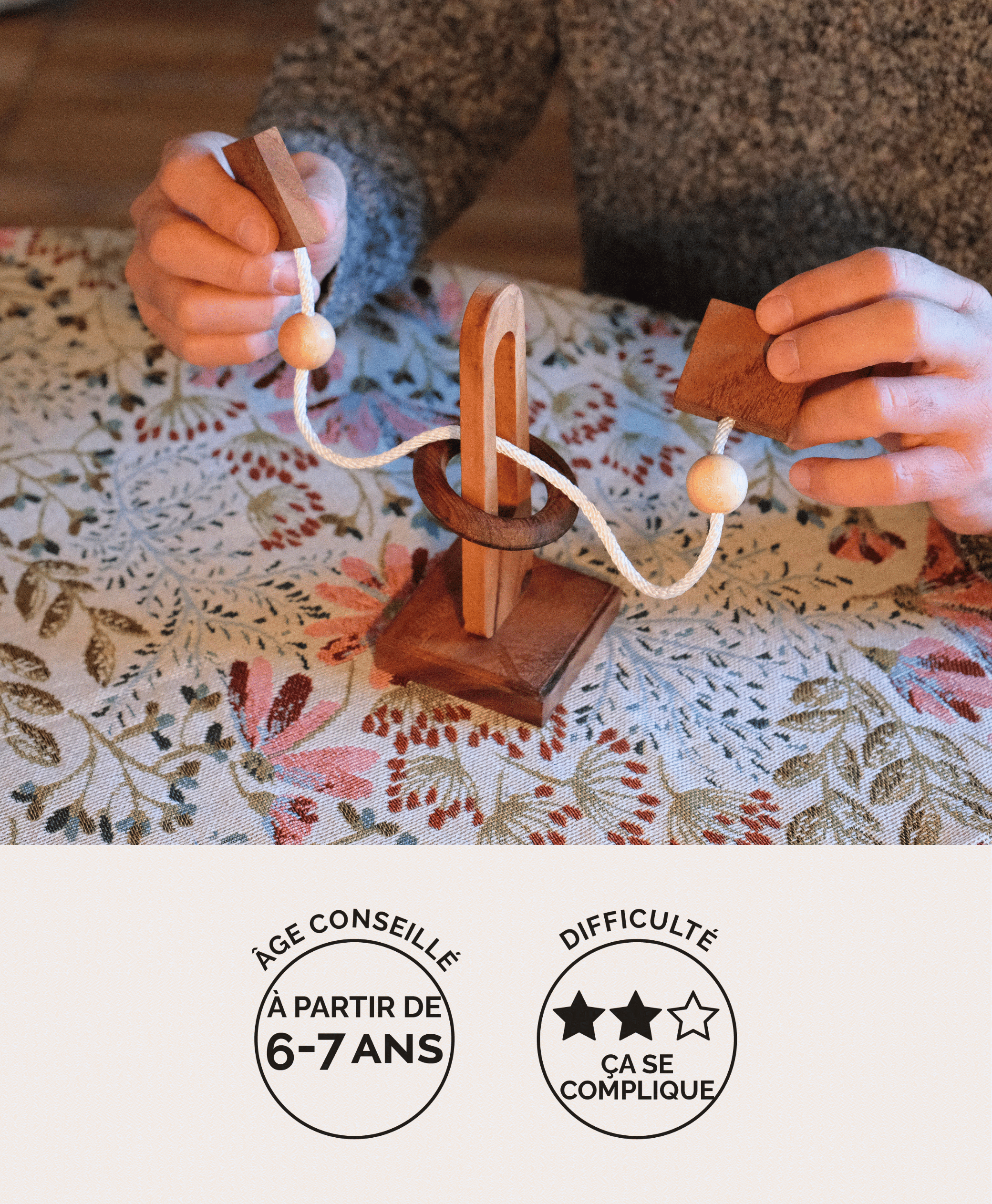 L’Anneau Magique mettra votre patience et votre logique à rude épreuve : saurez-vous libérer l’anneau piégé sans transformer le cordon en nœud impossible ?