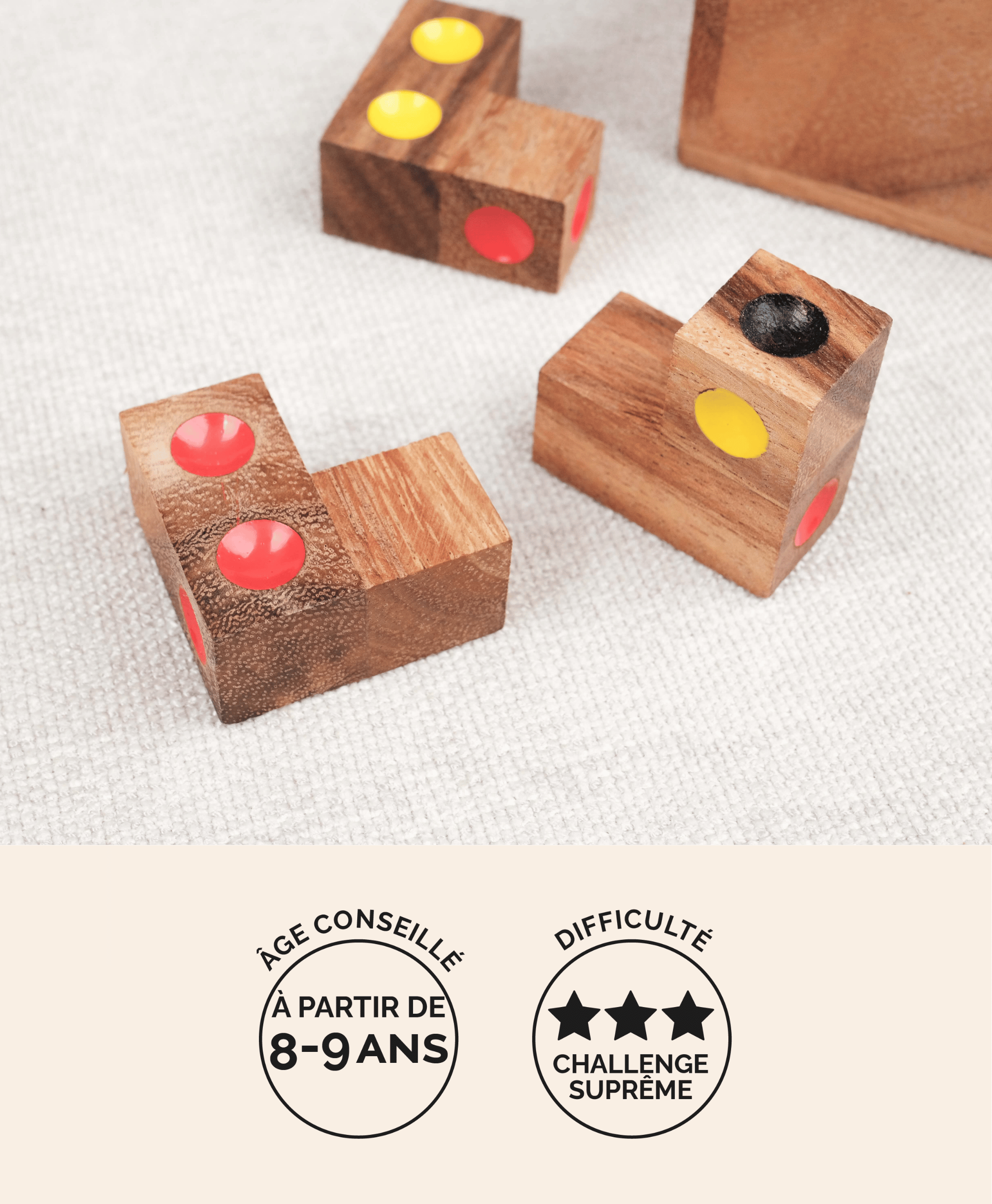 L’objectif : reconstituer le dé dans sa boîte. Mais attention… toutes les pièces ont la même forme, et il faudra réussir à assembler un cube parfait qui représente un véritable dé.