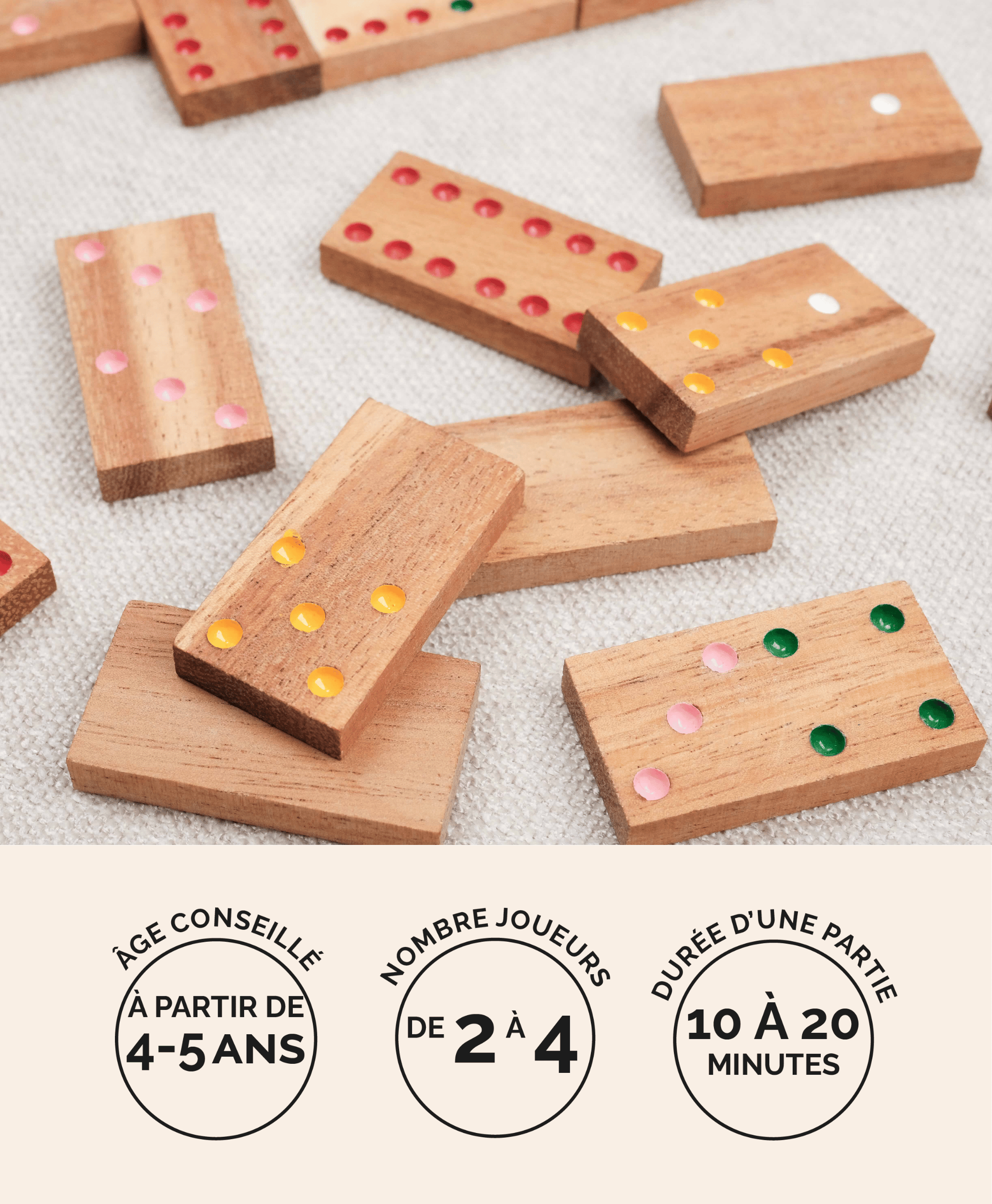 Indémodable et intemporel, le Domino en bois est un grand classique des jeux de société familiaux. Accessible dès le plus jeune âge, il permet de partager des moments conviviaux tout en stimulant la logique, l’observation et la concentration des enfants.