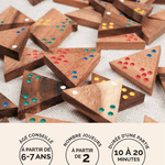 Coffret Triomino en bois avec pièces triangulaires sérigraphiées et colorées